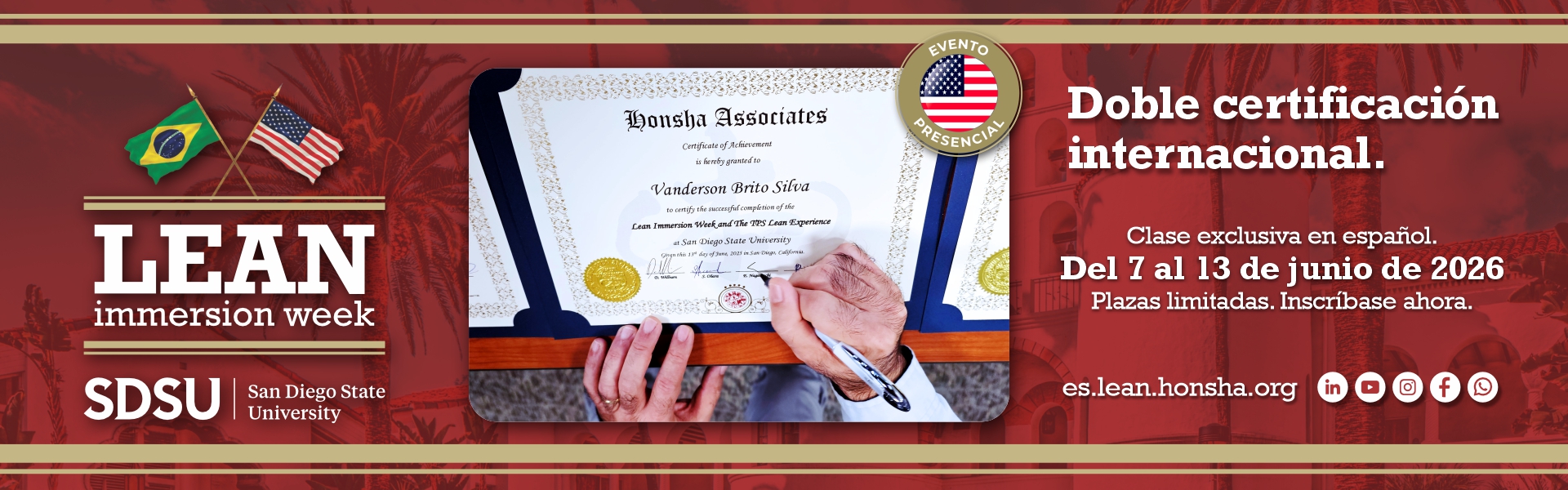 Durante 7 días intensos en la San Diego State University (SDSU), te sumergirás en el corazón del Lean, de la mano de quienes llevan en su ADN el legado original de Toyota: senseis y expertos globales que transforman empresas de alto rendimiento en EE.UU., Brasil y en todo el mundo.